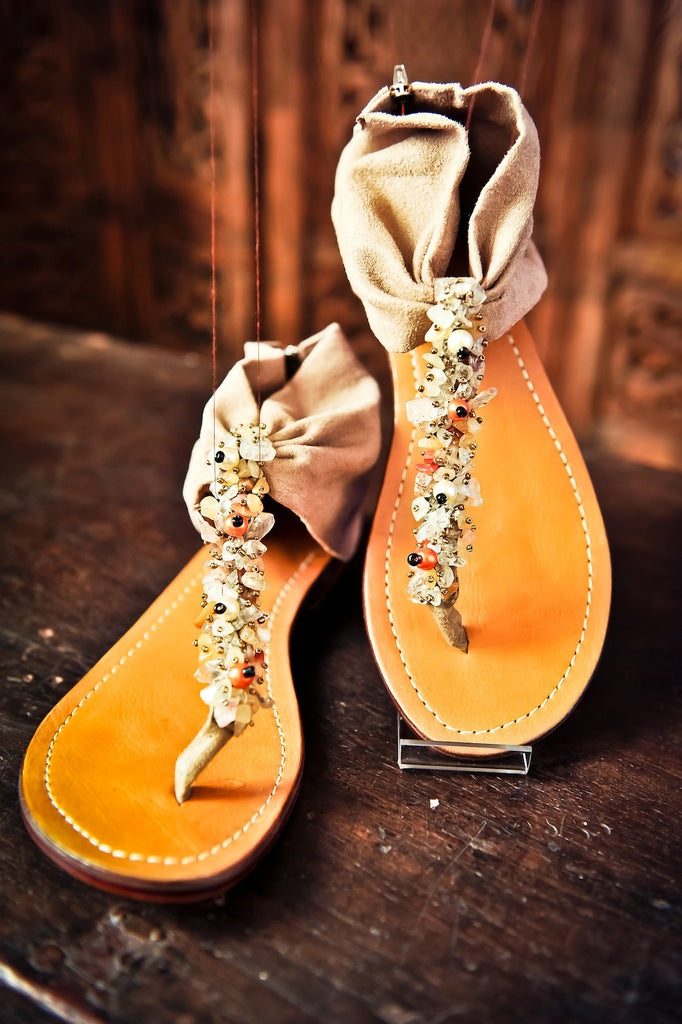 Made from suede leather with additonal fancy beads, very comfortable to wear.
